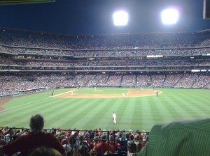 We arrived in the third because there was ridiculous traffic and we still had to have a sip of beer in the lots. Though I don’t go very often, I really do love the new park. It is so much nicer than seeing a ball game at the Vet. I’m really glad they chose, in the end, not to share a stadium with the Eagles.