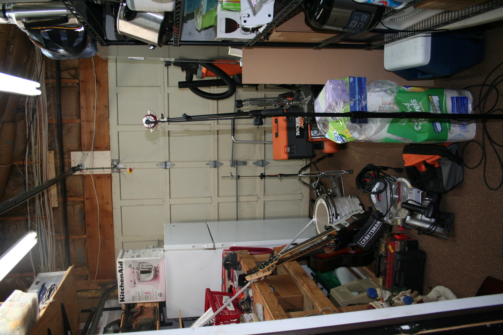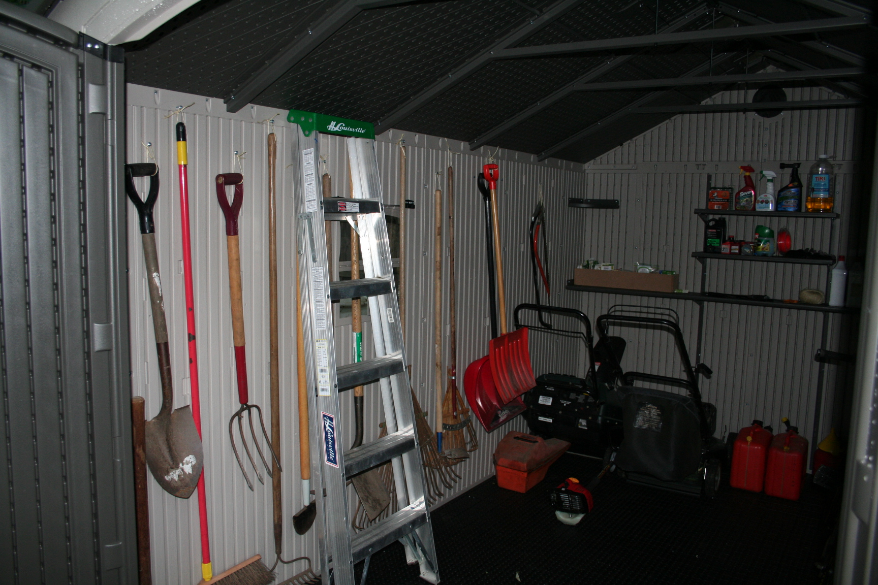I also had a small outdoor storage shed. This was actually just a small closet attached to my house and not really a shed at all but more of an outhouse. This is where I’ve managed to stuff every bit of lawn furniture cushions, lawn and garden chemicals (yes, some of them organic, but not all), seeds, a rather large ceramic kiln, a lawnmower, weed whacker, blower, gas for all three (and some gas for I don’t even know what), and all kinds of various outdoor things that really don’t fit in a 4’X6′ closet.