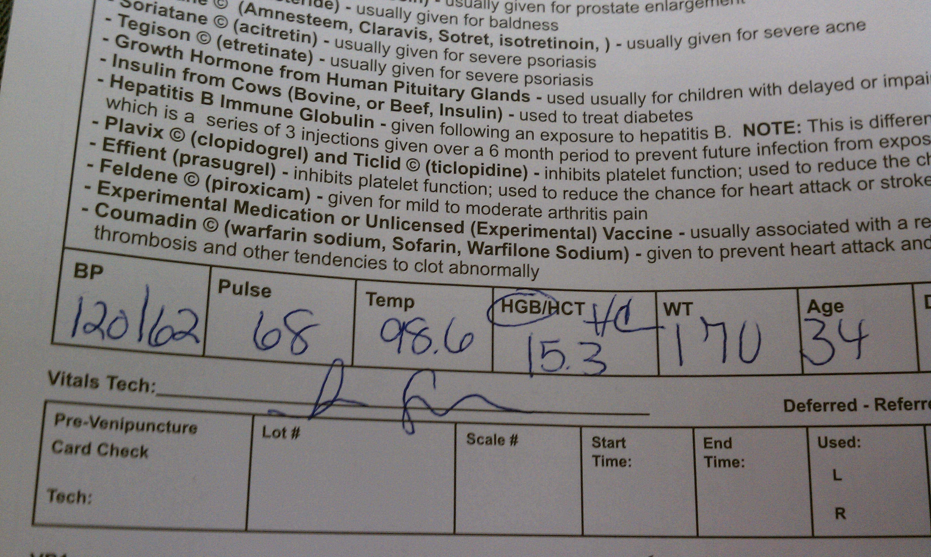 giving blood is kind of like getting a mini health checkup. I don't know what HGB is exactly, but I was told I wouldn't die if I lost a pint of blood.