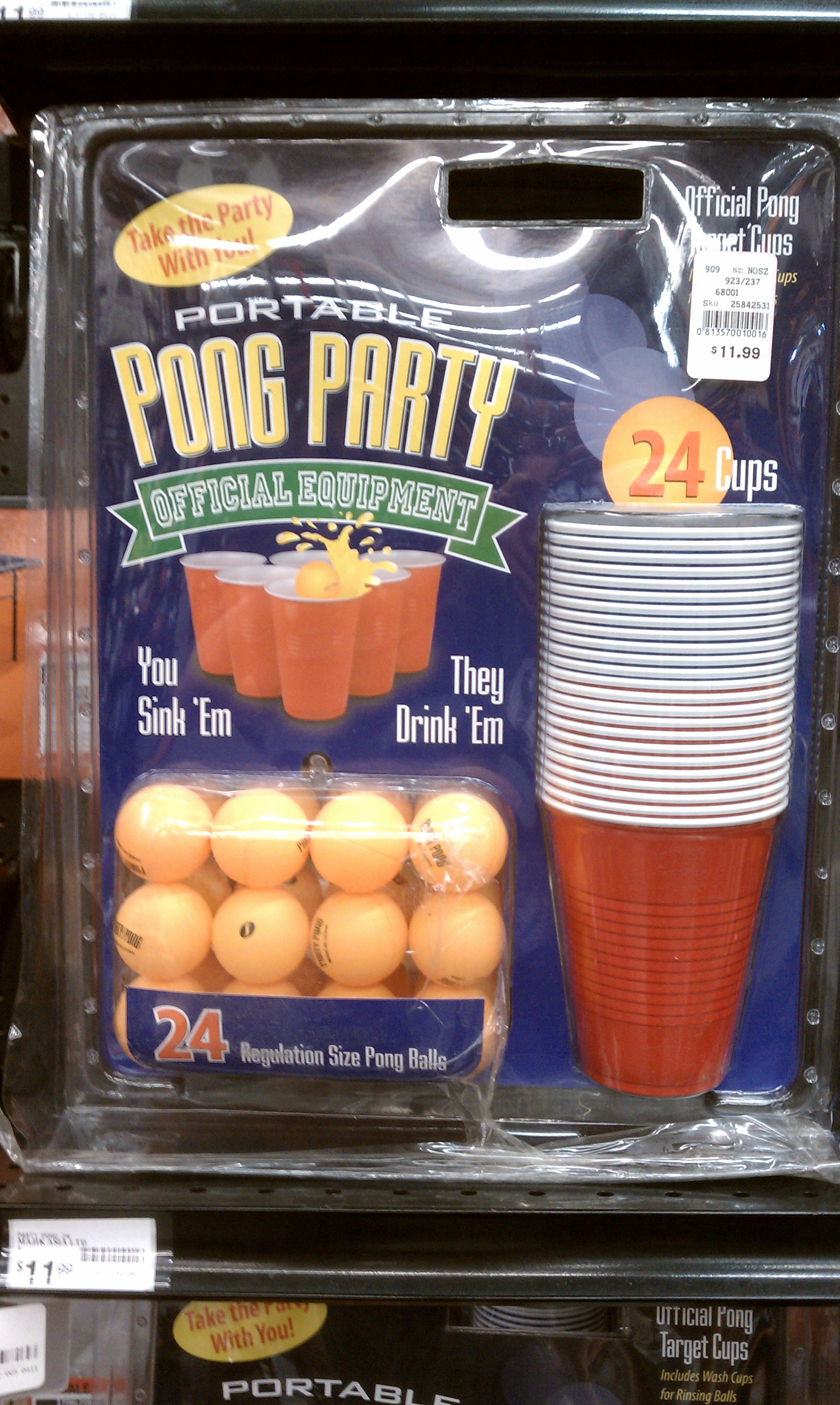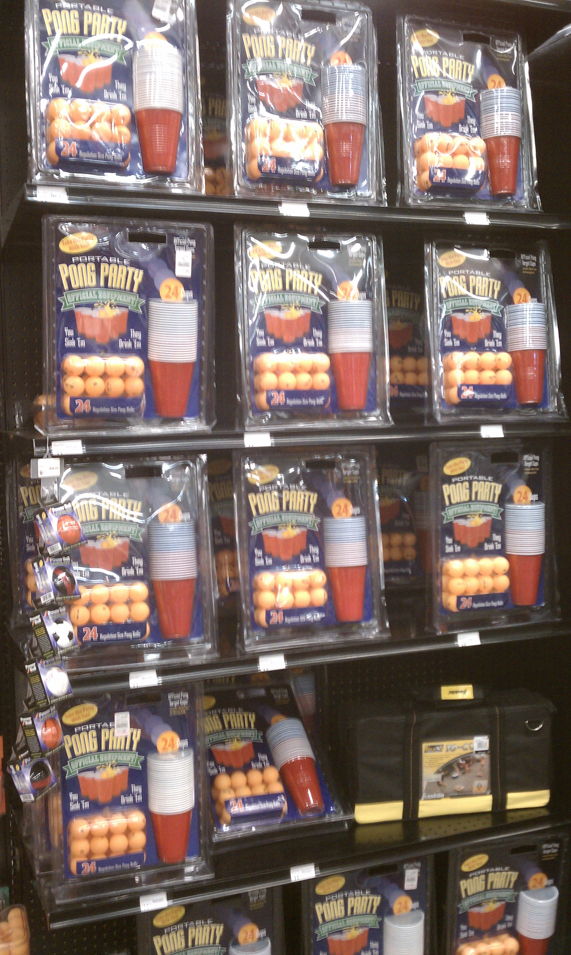 I went out to do some shopping for our vacation that starts on Sunday on my lunch break today. Found this. While I don't need this at all, because I already have a healthy supply of Solo cups and ping-pong balls, I challenge you to guess where this was an appropriate item...