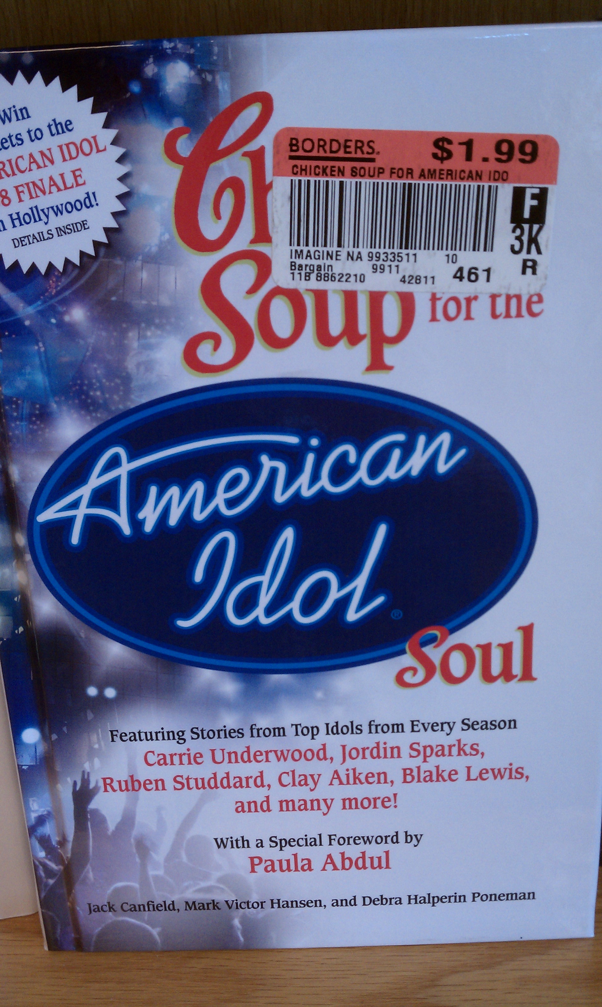 And I found this gem for only a mere $1.99. "Chicken Soup for the American Idol Soul." Becuase who doesn't want life lessons from Paula Abdul, Ruben Studdard and....Clay Aiken?