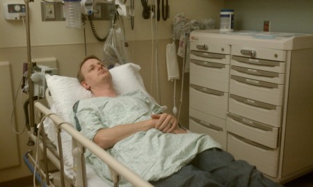 There was a pull out bed in my room for Monika. I was still a robot, with and IV in my arm, and a computer hanging from my neck relaying my vitals to the nurses’ station, so we couldn’t sleep in the same bed. I’m pretty sure that wasn’t allowed regardless. We booted up my laptop and watched “Forgetting Sarah Marshall,” again. Then, we went to bed at midnight.