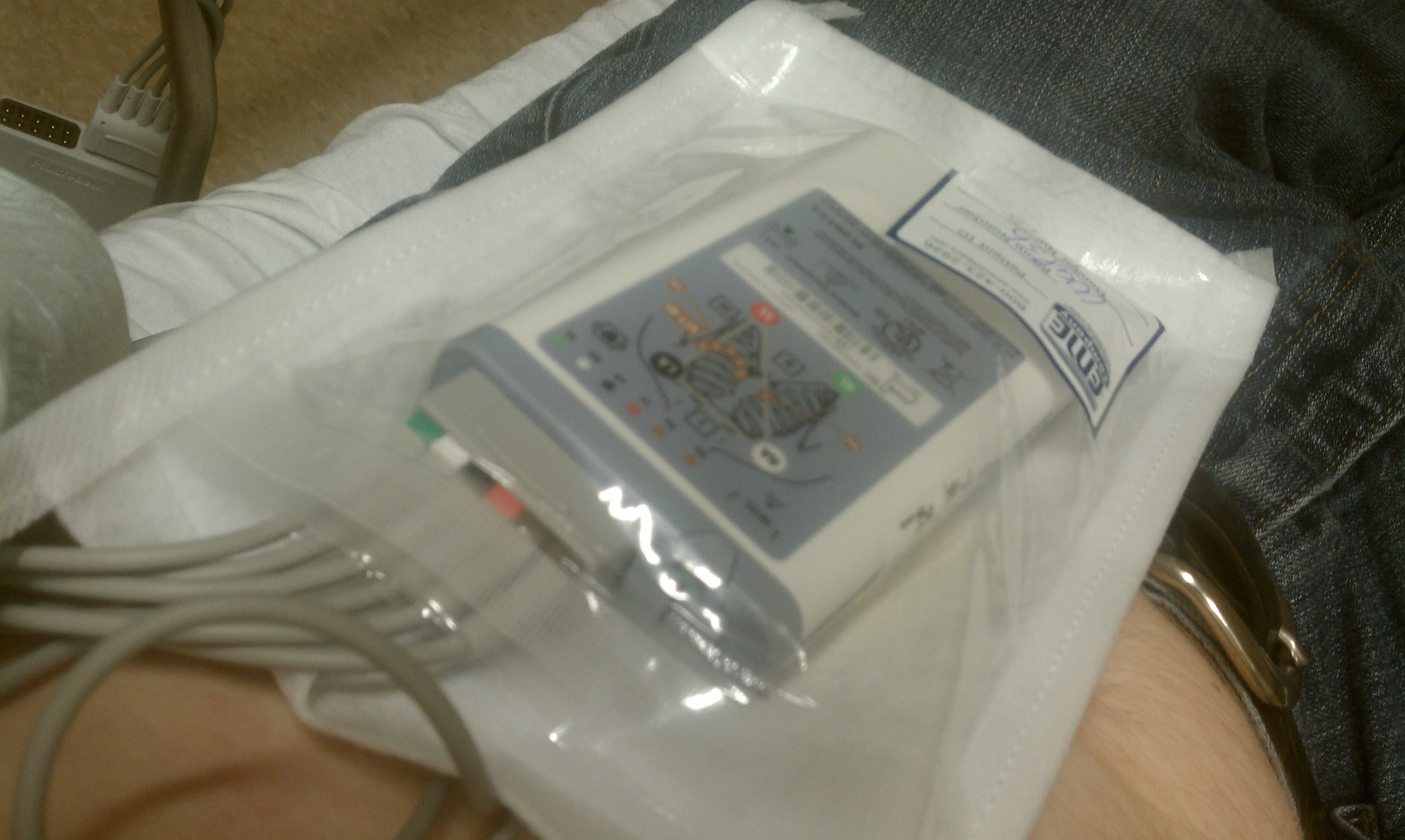 I was a few doctors, and they gave me some immediate medication. Eventually, a cardiologist dosed me with aspirin and nitroglycerin. After 3 hours in the ER, they hooked me up to go on a mobile vital signs monitor system.