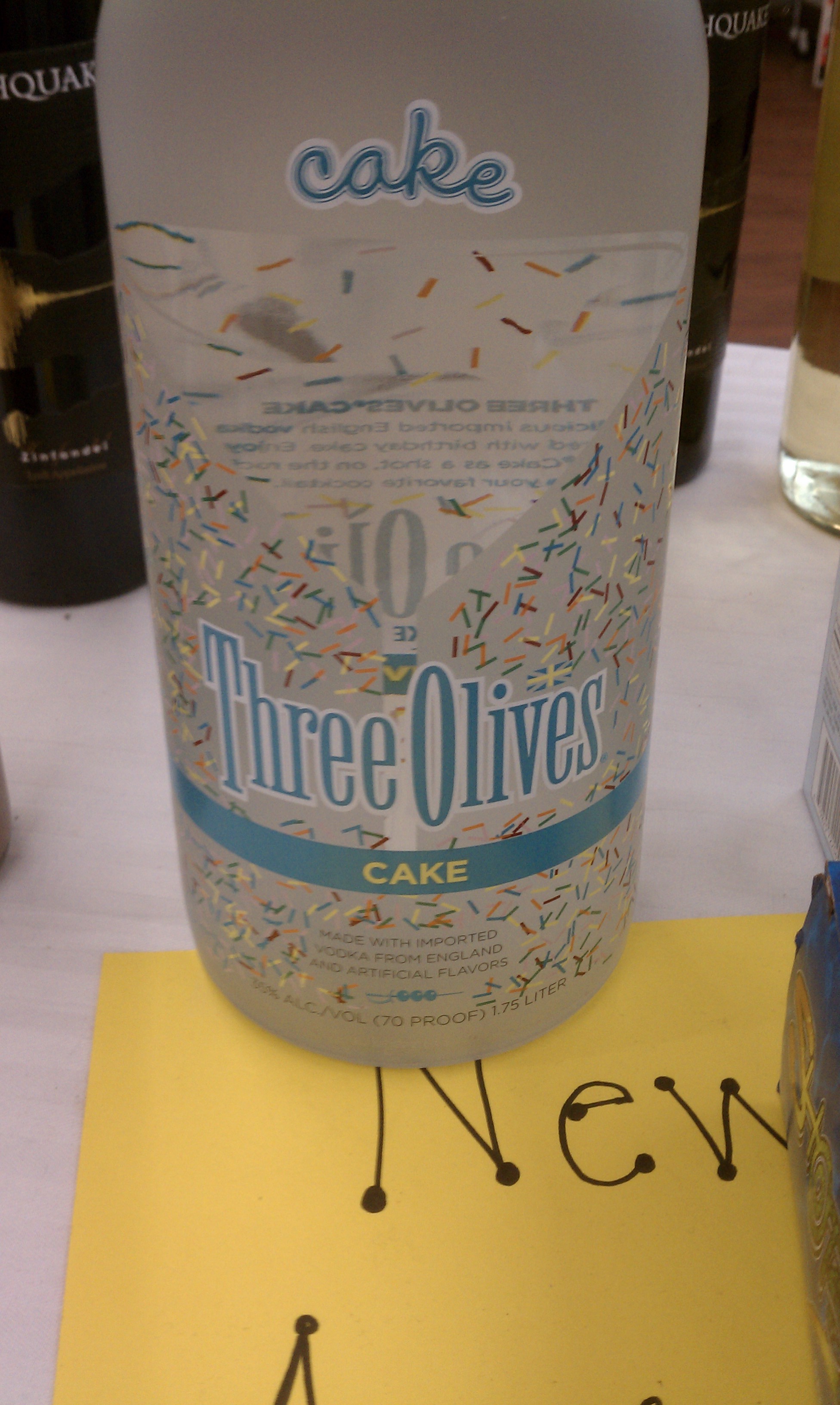 stopped by Canal's and found a new flavor of Three Olives..."Cake." This is bordering on insanity. If they end up making Three Olives "Sour Patch Kids," I'm in BIG trouble.