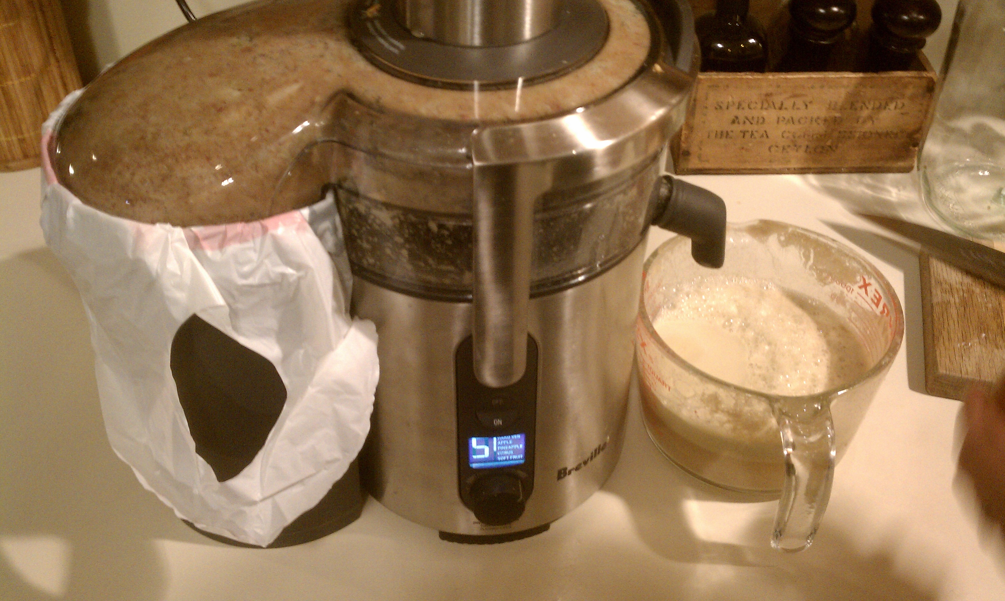 ...we juiced that bumper crop of apples with a genius plan. This is our new juicer, the Breville made famous by that movie Fat, Sick and Nearly Dead (check it out)