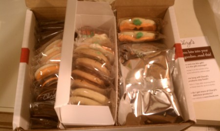 we got a huge box of fresh cookies and sweets delivered from my mom for Halloween. our favorite...salty, chocolate cookies.
