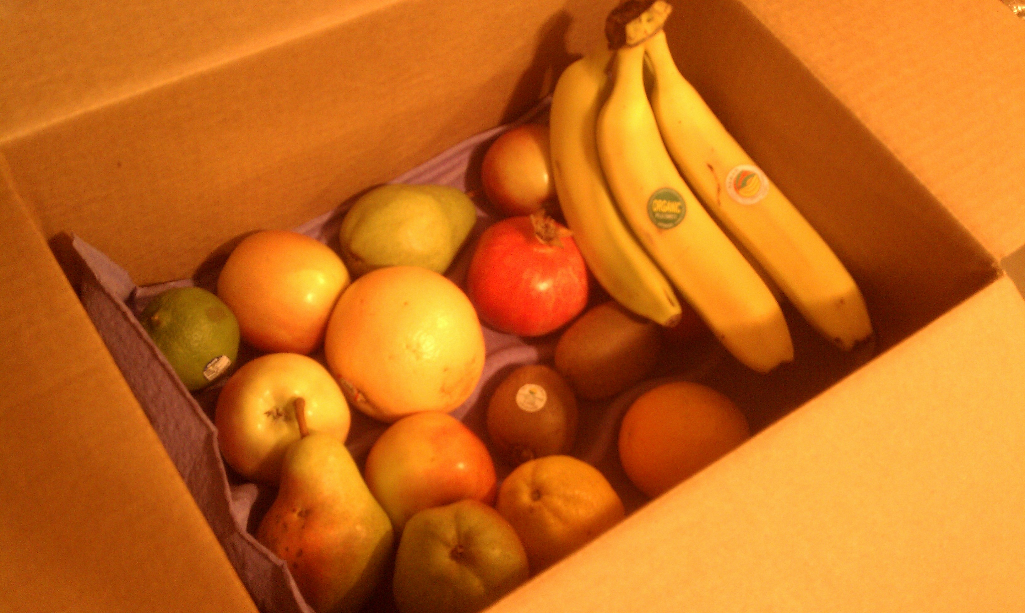 as the weather got cooler in the last few weeks, with even a snow storm thrown in there, it's nice to still get fresh, organic fruits every week, delivered to our house.