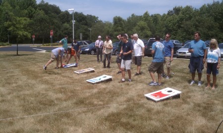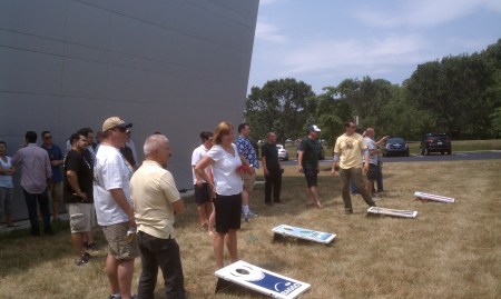 Along with the BBQ tent, we managed to organize 12 teams to pass the time playing Baggo. Now, I prefer Washers, but as long as the game allows for one free hand to hold a beer, I’m okay with it.