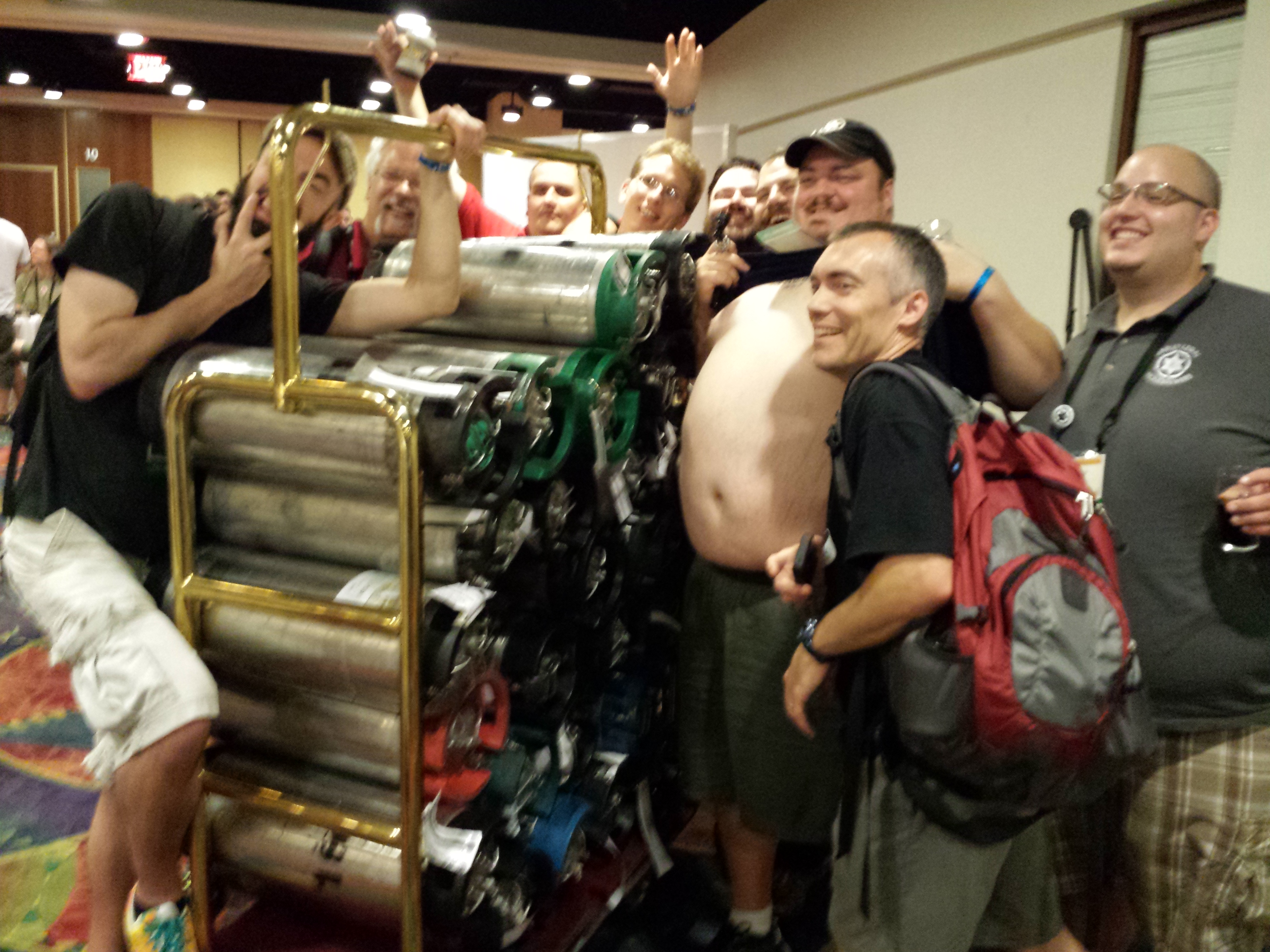 all the kegs loaded up to be taken from club night. Evan really get into the spirit of the celebration.