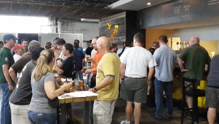 club members sampling both the brewery’s beers and our own home brews