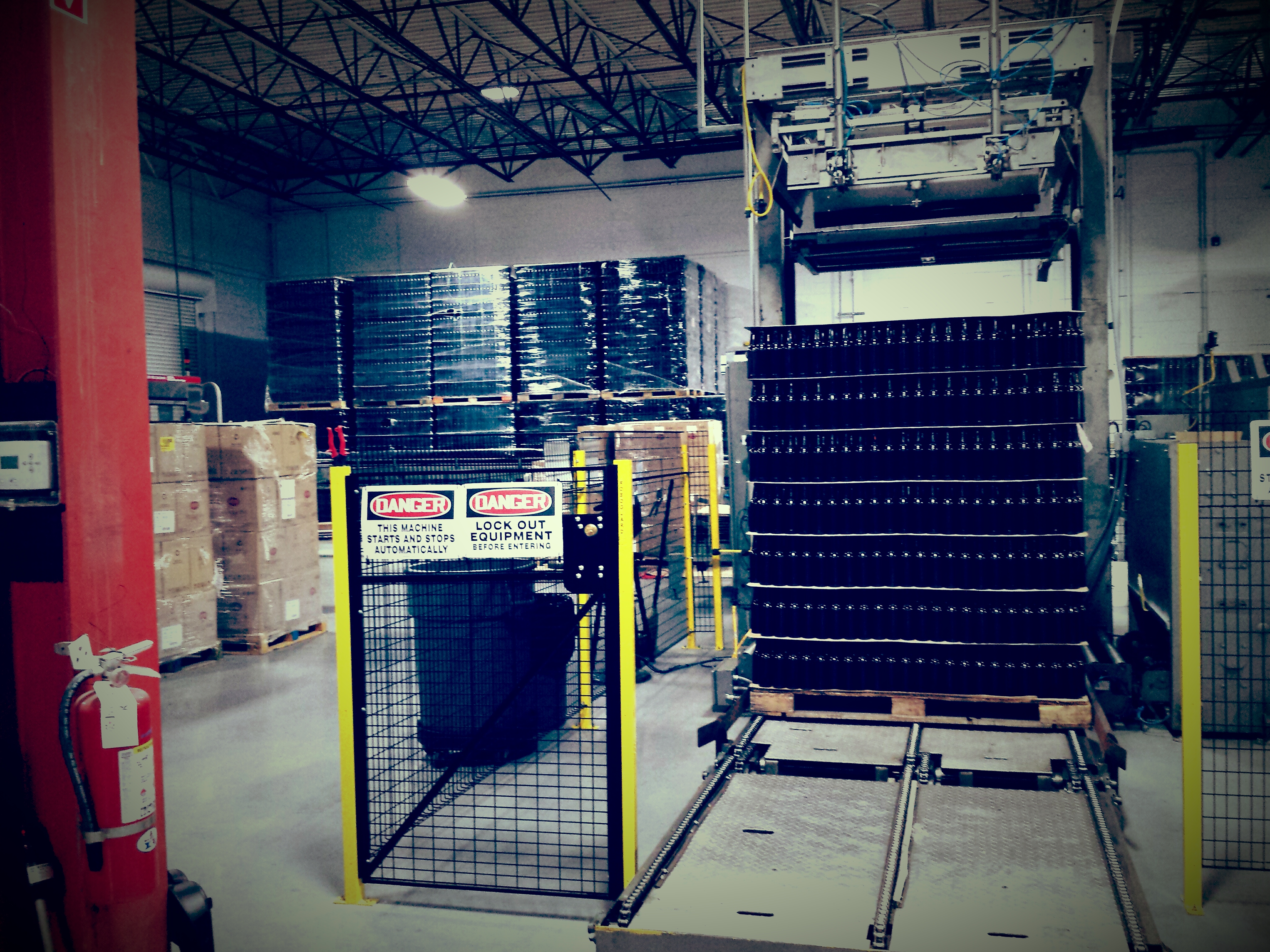 pallets of bottles waiting to be automated