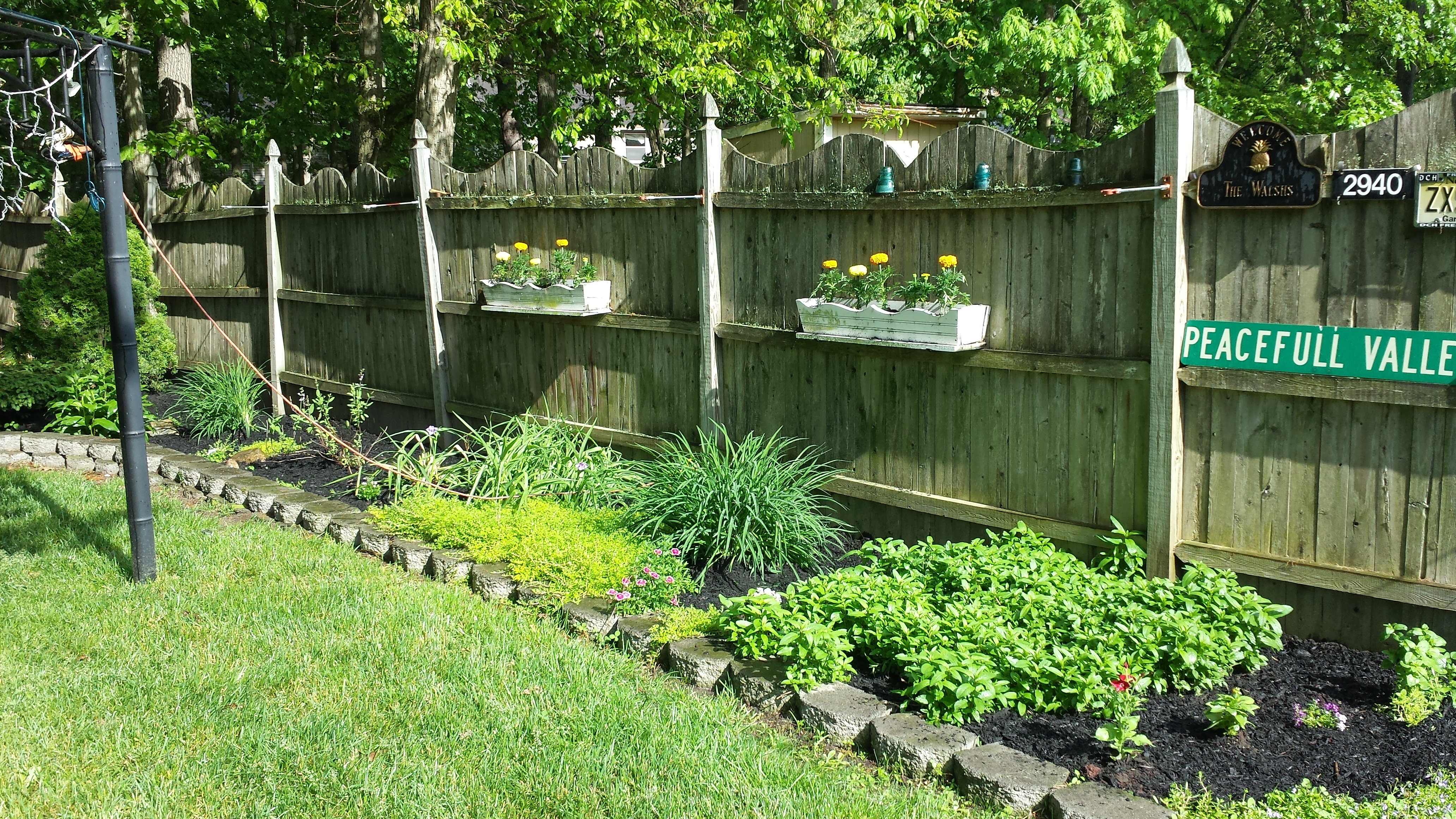 This bed is filled with all our perrennials that made it through a tough winter. Some of them did not. Soon, all the mulch will be obscured with the color of annuals blooming.