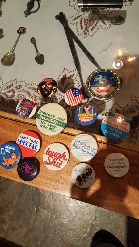 Pins from my trench coat in middle school. They confiscated all the good ones when I went to the set of Double Dare to see my friend compete live. these were the ones that were “allowed.”