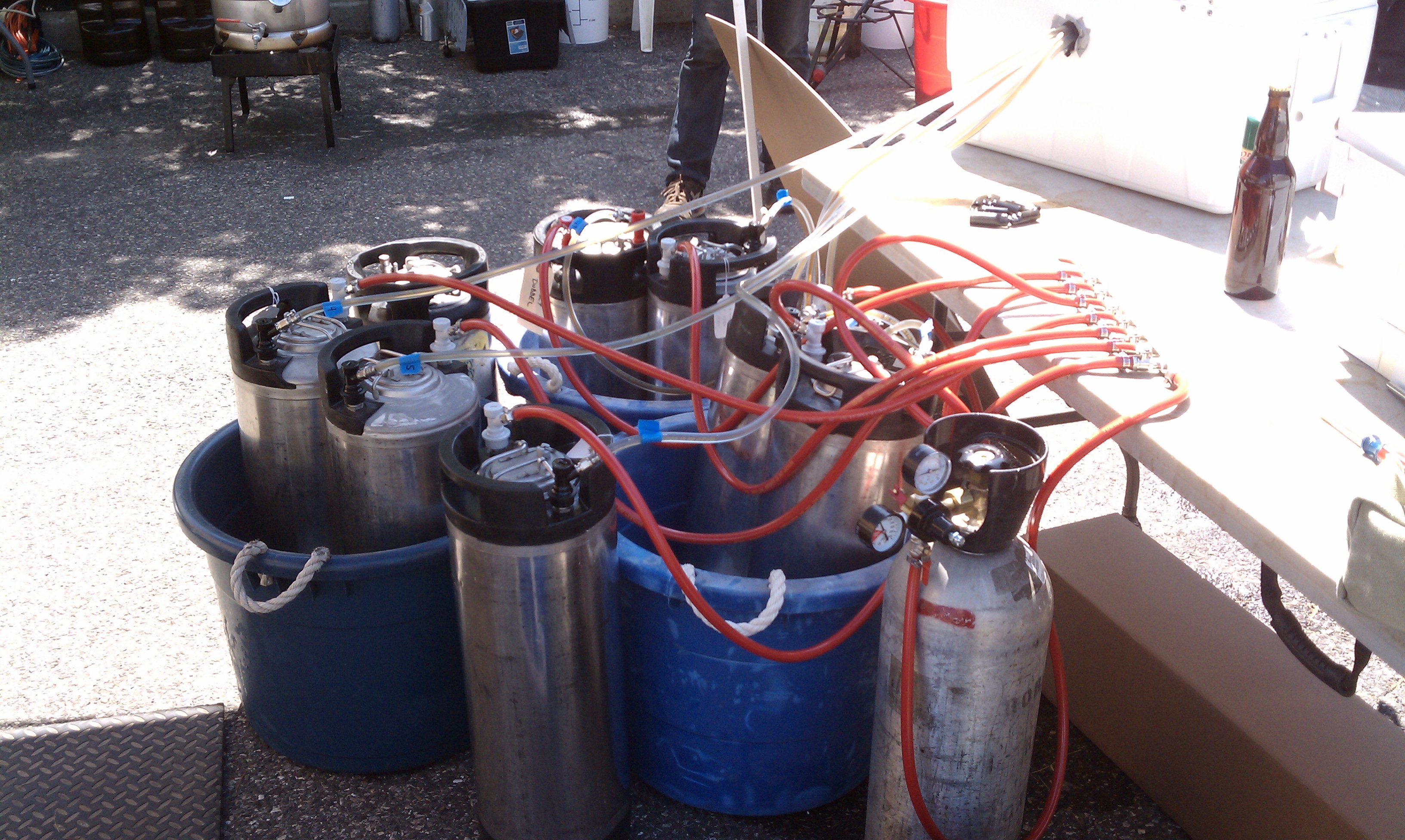 This is the eight keg system that the president of Barley Legal Homebrewers set up. Had some of his classic "thong remover." It did not cause me to take my pants off, luckily.
