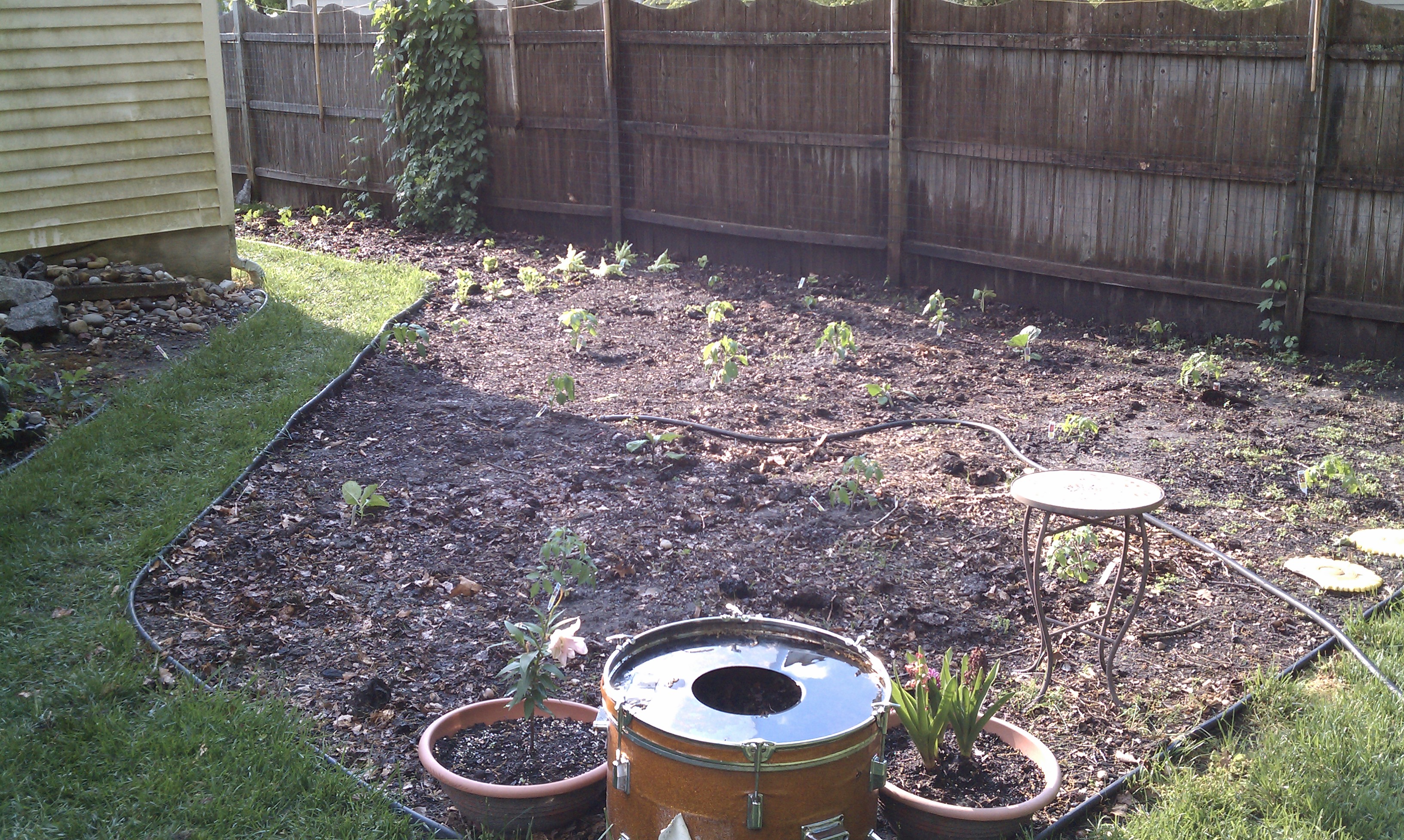 Well, me and Monika got around to getting our yard together.  Sometimes we get to it early, and sometimes later than usual, but this year I think we made out pretty damn good.  Planted the veggies two weeks ago, and got flowers (most of them, but still some work to do) and mulch (three yards moved by hand) into the yard before Memorial Day.  I call that a success.  It’s always tough, and I can’t exactly say that I find inherent pleasure in moving mulch, digging holes, and general yard cleanup any more than I enjoy cleaning a toilet bowl.  But I do love the feeling of accomplishment when a dirty job get done, and you can relax, sit down and enjoy it.