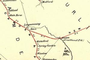 There were a lot of “right-of-ways” that ran close or through Atco. Most of these were, in the beginning, for cutting down trees in the Pine Barrens and bringing them to Philadelphia for the expanding city. They also transported the glass that was made in several glass furnace factories located in the woods to the city for windows in the newly built buildings.