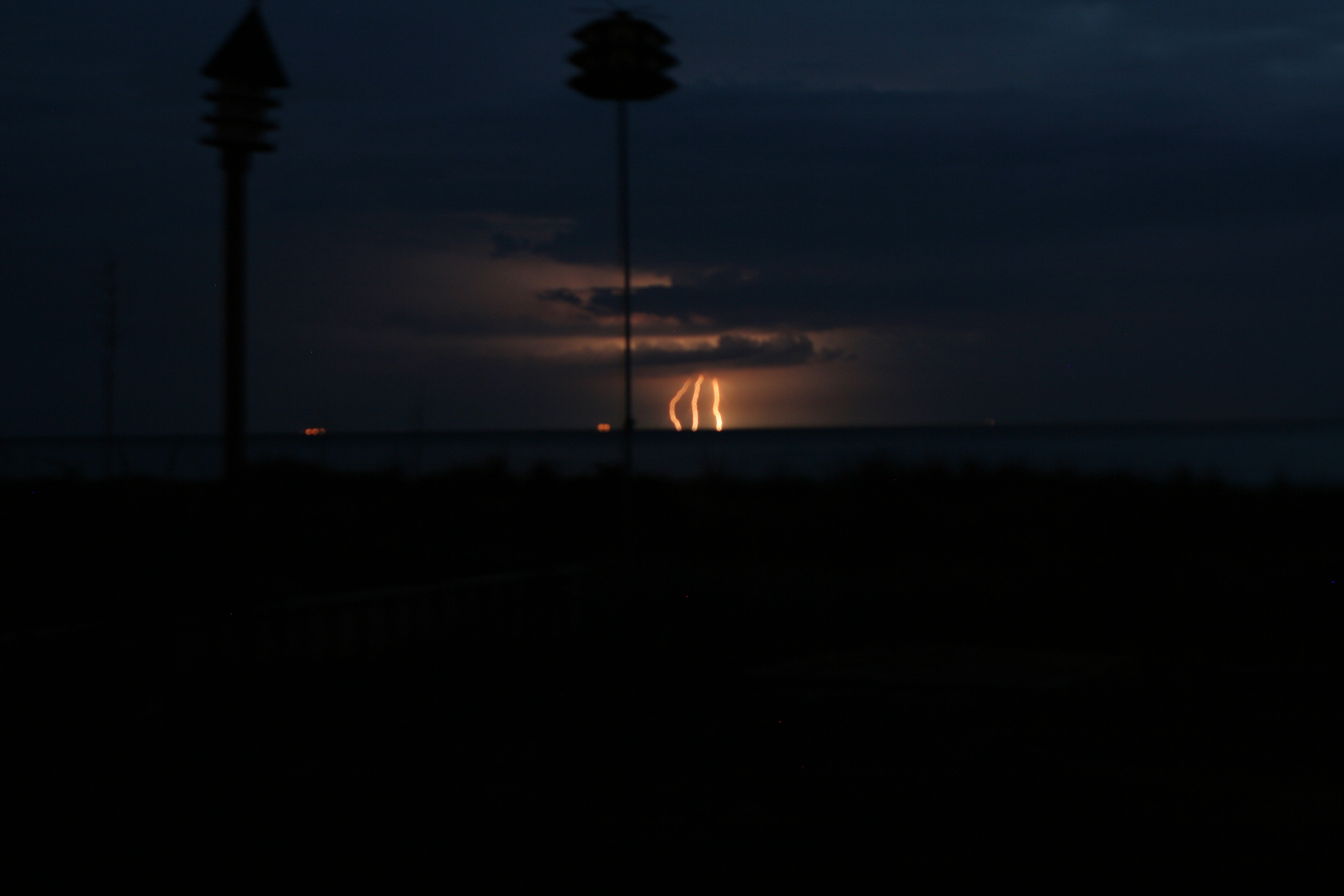 we went swimming, even though there was a ton of jellyfish, and the storm clouds were rolling in. Got in a decent Frisbee toss as well. The girls did some beach yoga as well.