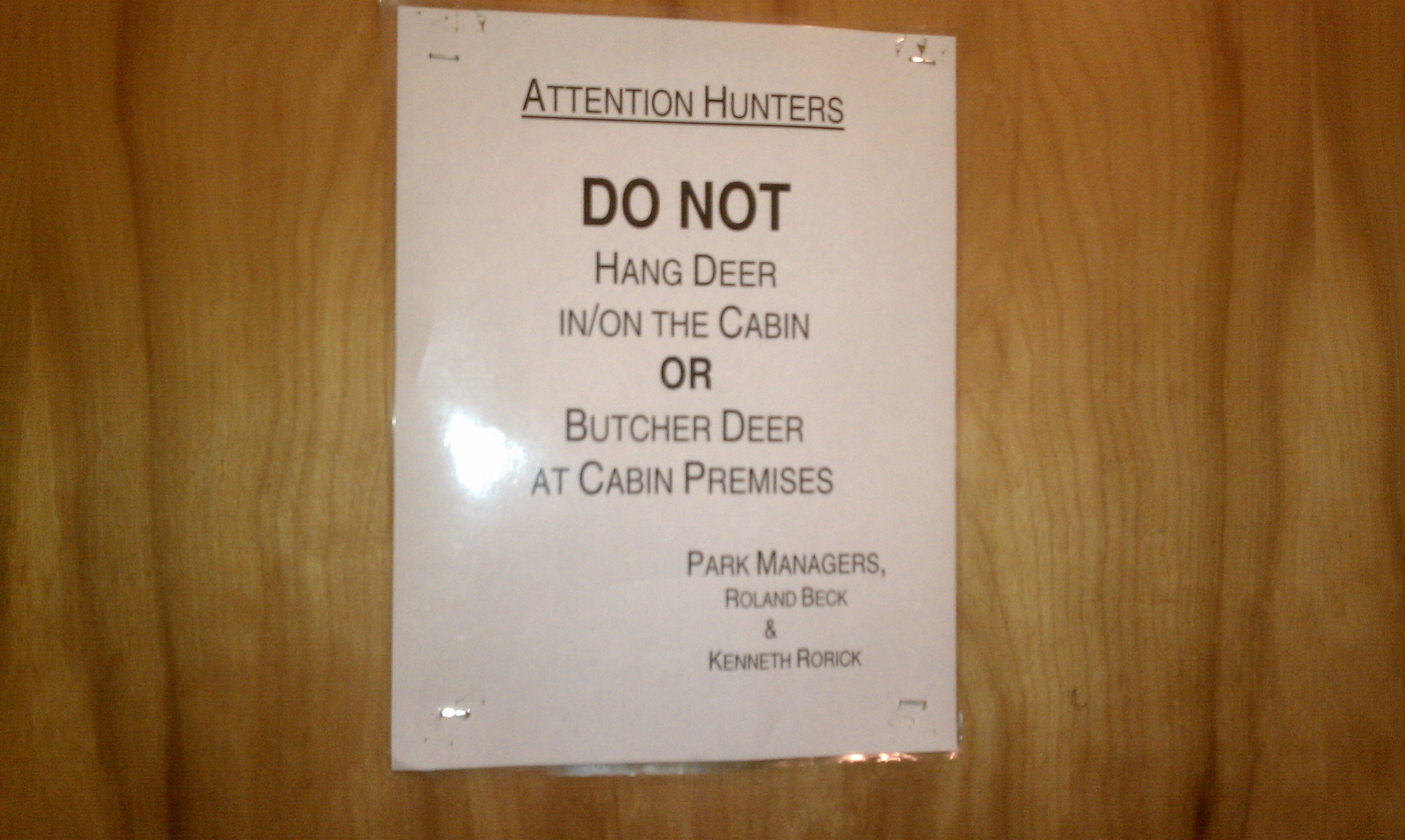 we rented a cabin in the woods. I wonder how many times they had to scrub blood off the floors before the cabin warranted this sign?