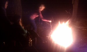 we were the only ones in the campground with a fire, even though lots of people were out drinking on their porches, so we kind of became the center of attention.