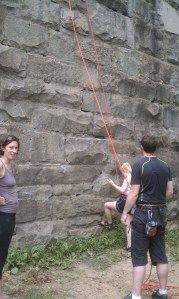 later, we went to try and climb one of the standards, which has slanted walls, but is still pretty difficult to climb. That girl on top was the lead climber, and she was awesome. There wasn't anything she couldn't do.