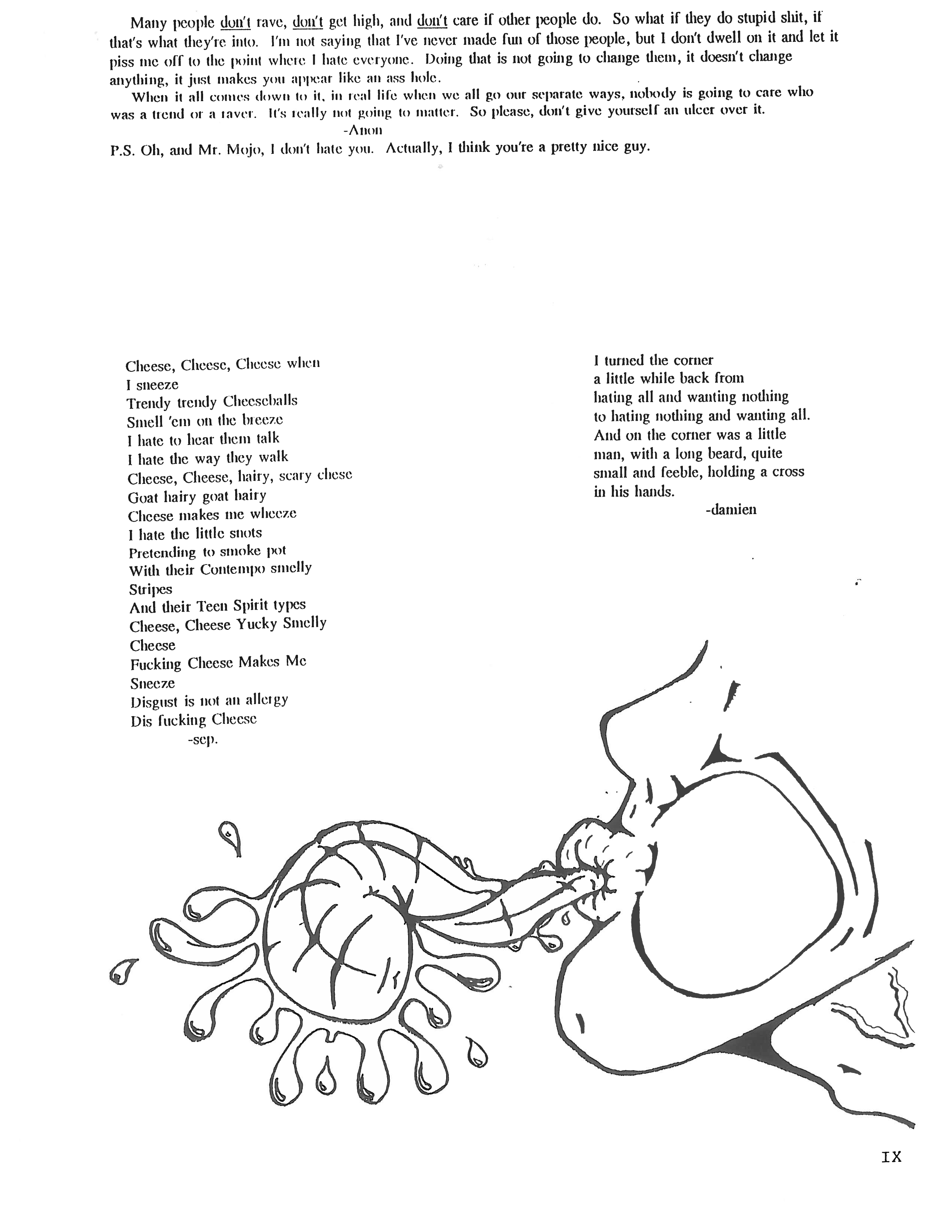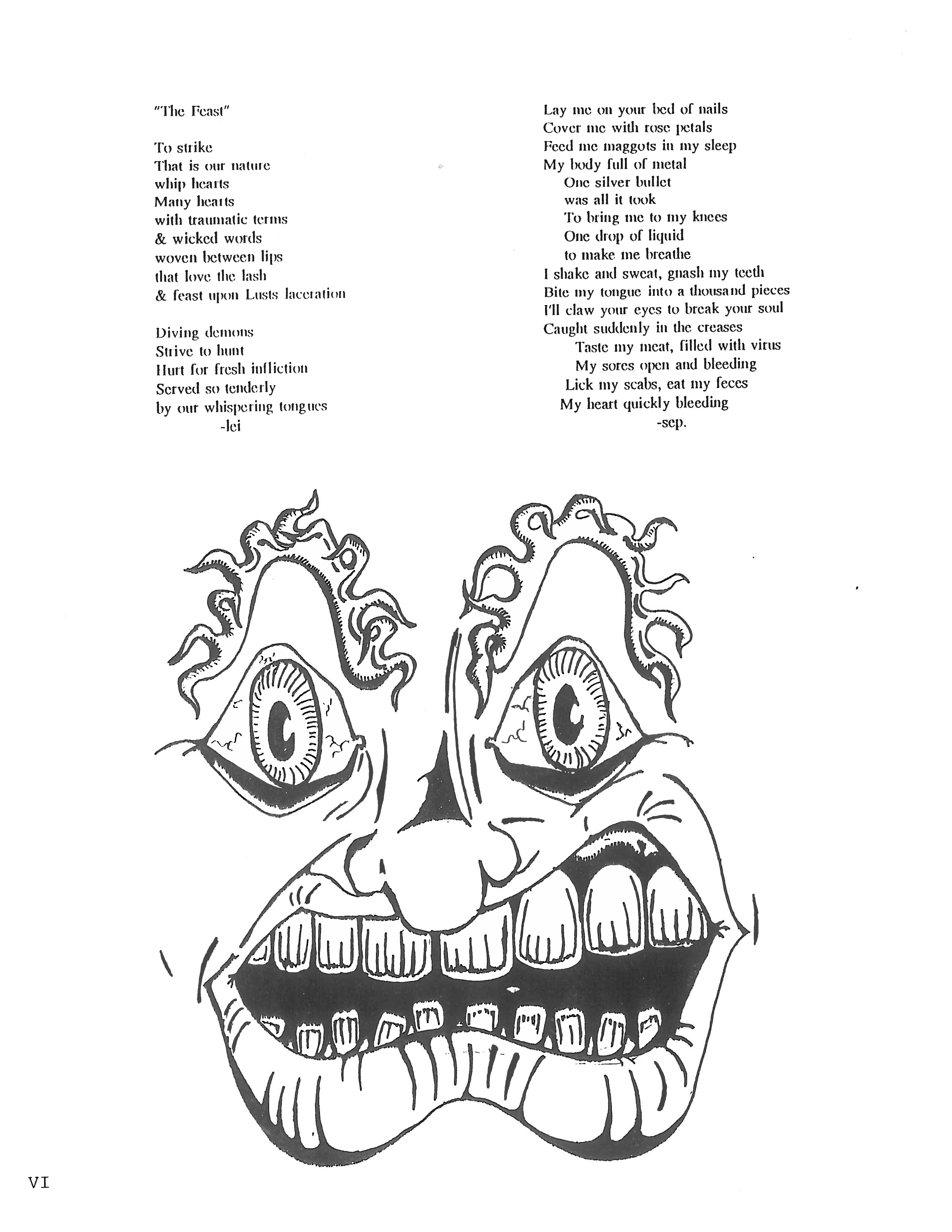 The writing club was cool, but I wanted to be in charge, so I started my own fanzine. I asked all the people I was friends with who were artists, or poets, or writers, to share what they had been working on and promised to put it all in my fanzine. At one point, I had a rival fanzine in the school that was called “Bite Mari,” which was published by these two younger girls, Elysa and Jenn, and even though we were my competition, their’s was pretty bad ass and hilarious. So I went on to date Elysa, the publisher, for 6 years or so.